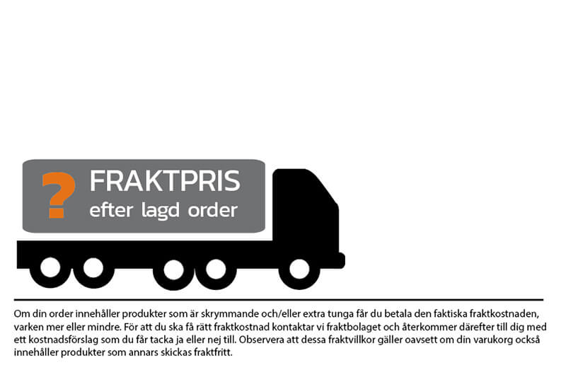När du lagt din beställning tar vi kontakt med dig och ger ett pris för frakten. Din beställning är inte bindande och du kan välja att stryka din order om du inte är nöjd med fraktpriset. Du kan också välja att hämta din beställning på vårt lager.