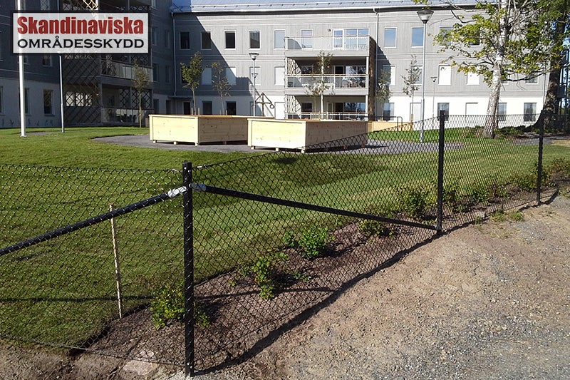 Svart stängselpaket med nät för förskola/skola, 25 m. Komplett med stolpar, nät och alla detaljer. Flera höjder.