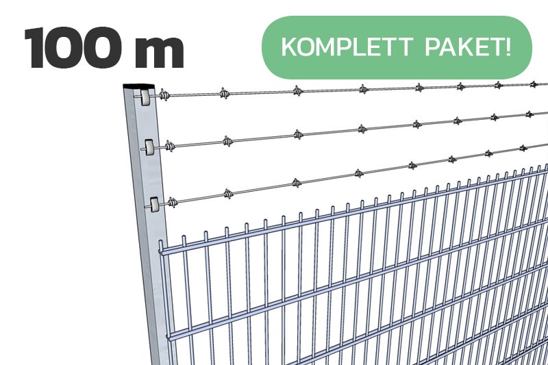 Varmförzinkade stålnätspaneler i komplett paket för 25 m. Flera dimensioner finns.