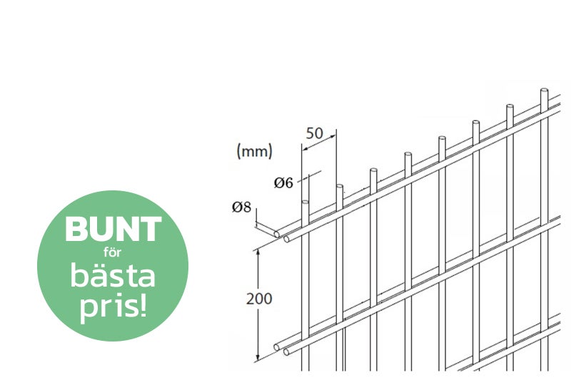 Varmförzinkade stålnätspaneler. Köp fler än 25 för lägre styckepris.