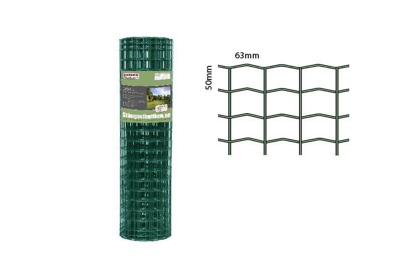 Svetsat kraftigt nät med snygg design, lätt att montera på alla typer av stolpar. Galvaniserat och plastbelagt i mörkgrönt.