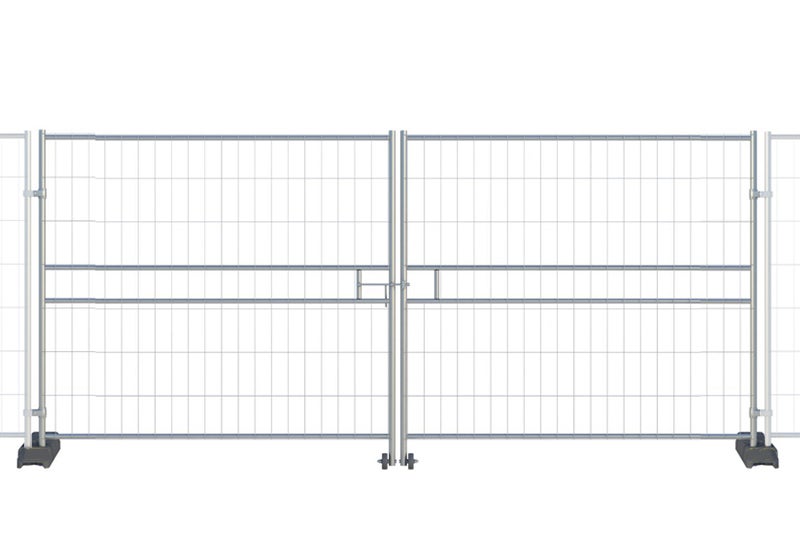 Komplett fordonsgrind med 4,4 meters öppning för mobila stängsel. Lätt att låsa med hänglås eller kedja (ingår ej), och lätt att öppna tack vare löphjulen.