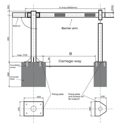 Fällbom i aluminium, låsbar och med inbyggd motvikt. Upp till 9 m.