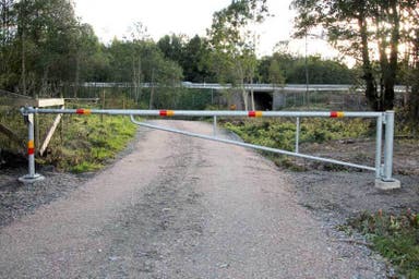 Kraftig vridbom med fotplatta. Hindrar effektivt obehörig trafik. Teleskopfunktion gör att bommen kan anpassas efter bredder upp till 9 meter.