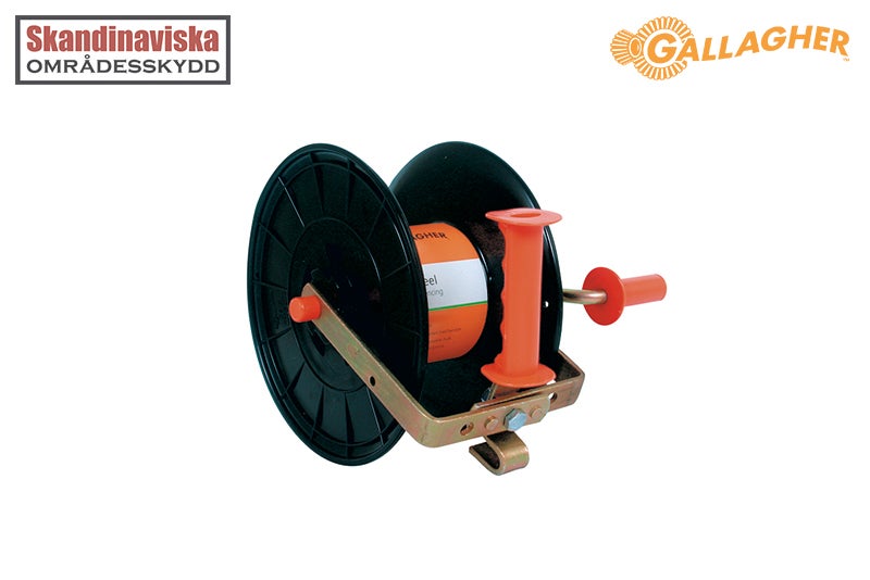 Ekonomispole. En stark och hållbar spole med spärrmekanism för att linda upp och dra ut vidoflextråd. Lämplig för upp till 500m vidoflextråd. Utrustad med isolerat handtag. Hakas direkt på stängslet eller används med stativ.